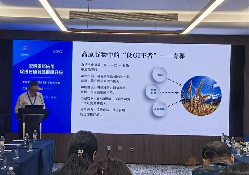 近日,由中國食品科學(xué)技術(shù)學(xué)會(huì )(CIFST)主辦的第二十五屆中國方便食品大會(huì )在四川成都召開(kāi)。本屆大會(huì )以“韌性成長(cháng) 向新而行”為主題,通過(guò)權威報告、行業(yè)對話(huà)、創(chuàng )新展示等不同維度,全面解碼方便食品產(chǎn)業(yè)高質(zhì)量發(fā)展的新趨勢、新動(dòng)能與新路徑。奇正青稞作為青稞產(chǎn)業(yè)龍頭企業(yè),攜旗下產(chǎn)品參會(huì ),奇正集團總經(jīng)理、奇正青稞董事長(cháng)程若瓊做了題為《 守正出奇--以新質(zhì)生產(chǎn)力開(kāi)拓高原的藥食寶藏 》為主題的專(zhuān)題報告。
